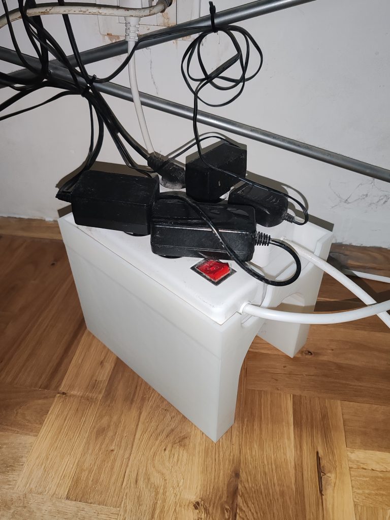 Model prikazuje funkcionalno postolje, koje se u ovom slučaju koristi za produžni kabl, dizajniran i odštampan po specifičnim dimenzijama korisnika. 3D štampa omogućava izradu korisnih dodataka koji olakšavaju svakodnevni rad – brzo, precizno i prilagodljivo stvarnim potrebama.