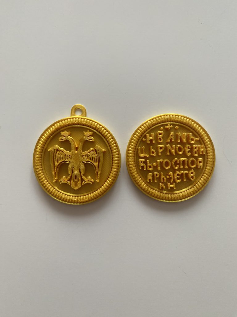 Ovde se može videti pečat Ivana Crnojevića, crnogorskog vladara, koji je rađen po specijalnoj narudžbini klijenta. Pečat je dizajniran na osnovu slike, prečnika je 4 cm i predstavlja sjajan primer kako 3D štampa može oživeti stare simbole koji se više ne mogu naći na tržištu, i tako oživeti istoriju na jedan poseban način.